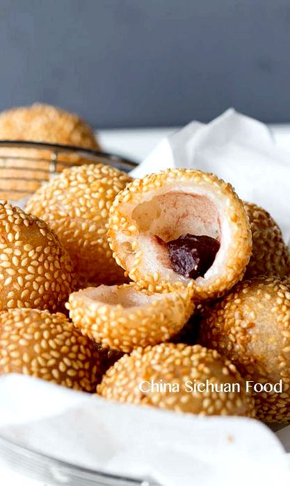 Ingredients Makes: 20 balls 30 g Tang Mien flour (Wheat starch) 195ml water 40g sugar a pinch of salt 150 g glutinous grain flour , sifted 3 teaspoon baking powder, sifted ( or replace 1tsp double action baking powder) 1 tablespoons of oil 200g red bean paste or lotus paste 1/2 cup sesame