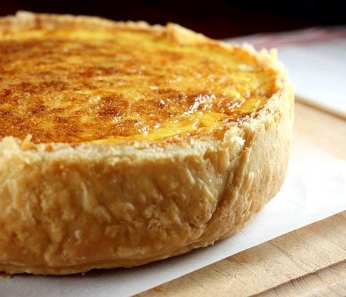 Ingredients Flaky Butter Crust, recipe follows 6 ounces thick cut bacon, reduce narrow strips (or “lardons”) 2 large eggs 2 large egg yolks 1 1/4 cups half-and-half 1/4 teaspoon salt 1/4 teaspoon ground white-colored pepper Pinch freshly grated nutmeg 1 cup grated Gruyere or Swiss Simple Salad,